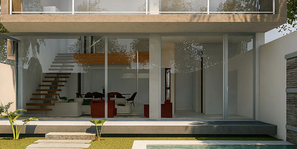 Este diseño es ideal para terrenos medianos o pequeños donde se busca maximizar el espacio. El segundo nivel suele destinarse a habitaciones con vista al mar, mientras que la planta baja se centra en la vida social.
